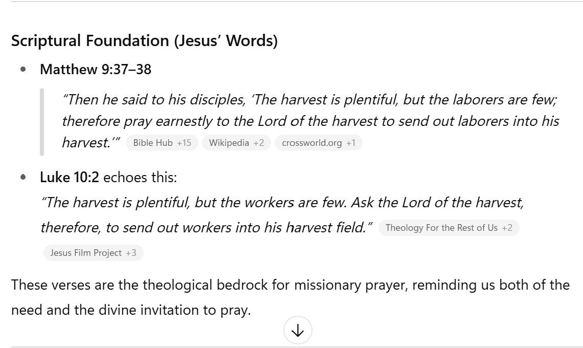 ChatGPT gave this summary of the command of Jesus to pray for laborers: